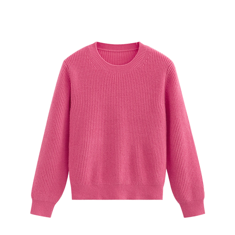 OEM kadın klasik katı yumuşak kaşmir yün kazak kazak kış rahat yuvarlak boyun nervürlü Hem örme triko
